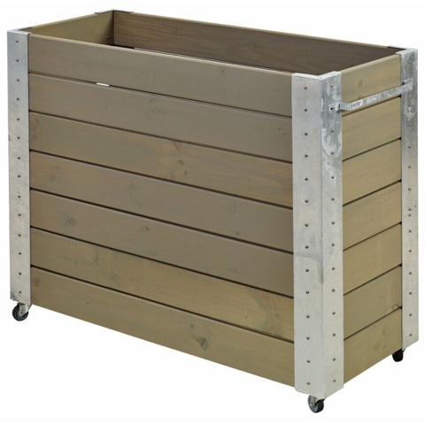 Blomsterkassen er fremstillet af trykimprægneret fyr/gran med FSC-mærke. Træet er beskyttet mod råd, svampe- og insektangreb, og det stammer fra bæredygtig skovdrift. Den er grundmalet gråbrun RAL 7023, og du kan finde blomsterkassen i forskellige størrelser. Hjulene måler Ø50 mm. OBS! Skal produktet ofte flyttes, anbefaler vi, at du udskifter hjulene til Ø100 mm.