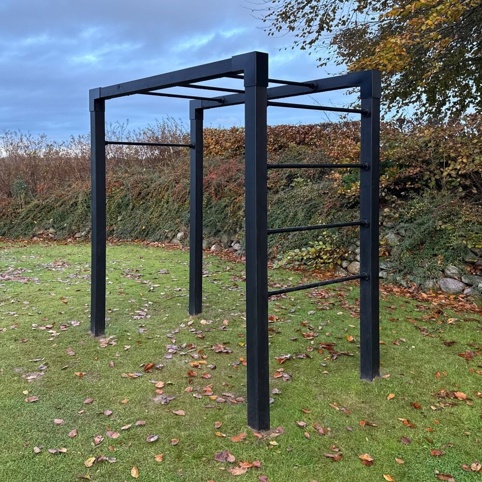 Skab din egen udendørs træningszone i haven, som inviterer til bevægelse og giver både voksne og børn mulighed for at udfolde sig aktivt. Det enkle og moderne træningsstativ har ribbe og træningsstænger placeret i forskellige højder, så du kan lave et hav af styrke- og udholdenhedsøvelser som f.eks. armbøjninger, pull-ups, dips samt ben- og knæløft. Stængerne kan også bruges af børn til klatring, kolbøtter eller til at hænge og svinge i armene.