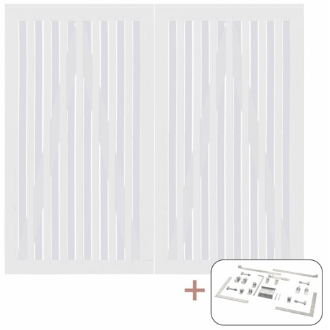 Har du en Nagano-hegnløsning, hvortil du gerne vil tilføje en låge? Så finder du her denne japansk inspirerede dobbeltlåge i hvid, der passer til ”Plus Nagano”-hegnløsning. På den måde sikrer du, at hegnet og lågen har samme stil og vil blende ind med hinanden. De smalle, lodrette lister går nemlig igen fra hegnet til lågen, som vil sikre den flotte 3D-effekt. Dobbeltlågen måler B: 200 cm, og den fås i forskellige højder – vælg den, der passer til din hegnløsning. Lågebeslag medfølger.