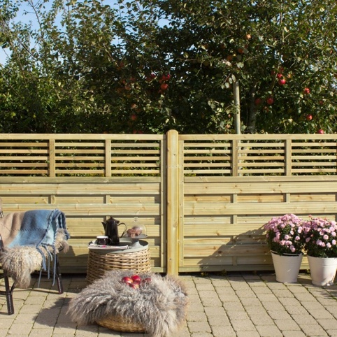 Mangler du en hegnløsning, der kan bidrage til at danne et åbent uderum, som samtidigt afskærmer og afgrænser haven? Så kan du bruge denne Plus Newline-hegnløsning som læhegn, der giver mulighed for at afskærme for kølige vinde, samtidig med du lige kan ane omgivelserne på den anden side af hegnet. Brug f.eks. hegnet på verandaen i sommerhuset, kolonihaven eller omkring terrassen. Hegnet har luftige vandrette lameller i toppen, der giver et mere åbent udtryk i omgivelser, samtidig med du opnår privatliv. Desuden fås hegnet i forskellige størrelser – find den model, der passer til dine behov.