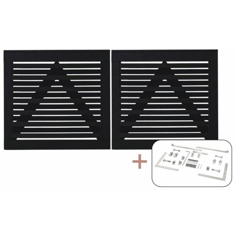 Ønsker du at tilføje en låge til din hegnløsning? Så finder du her denne sorte dobbeltlåge inkl. monteringsbeslag, som du kan bruge til ”Plus Osaka”-hegnserien. Lågen har nemlig samme elegante og karakteristiske design som hegnet – på den måde vil lågen og hegnet blende ind med hinanden, så du vil få et fuldendt helhedsindtryk. Dobbeltlågen måler B: 200 cm, og den fås i forskellige højder, så den som passer til dit projekt.
