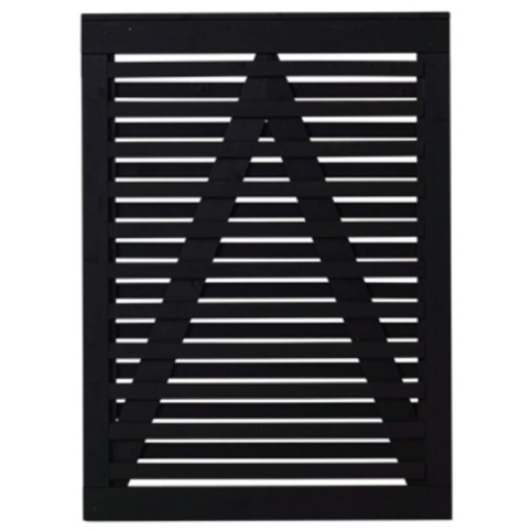 Denne FSC®-mærket ”Plus Osaka”-enkeltlåge er fremstillet af fungicidbehandlet fyr/gran. Lågen er grundmalet sort RAL 9005, og den er samlet med rustfrie slagskruer. Lågerammen er omlimet og måler 42 mm x 90 mm. Listerne måler 15 mm x 44 mm, og afstanden mellem listerne er 64 mm. Skråstiverne måler 15 mm x 90 mm.
