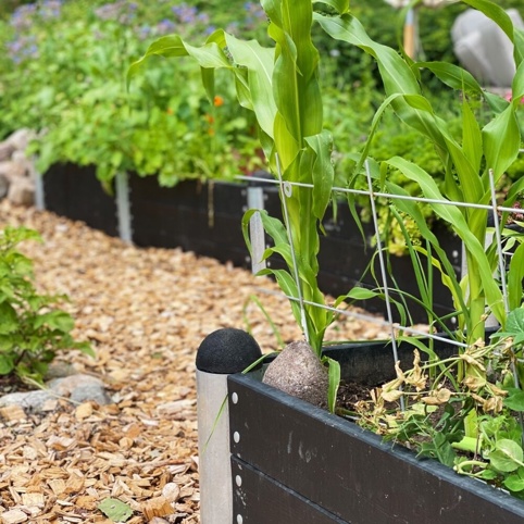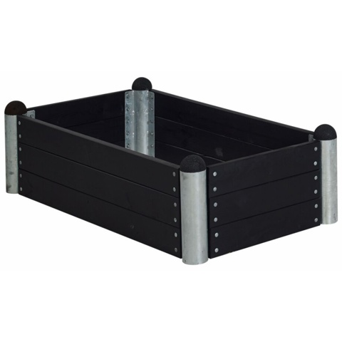 Det er fremstillet af trykimprægneret fyr/gran. Træet er modstandsdygtigt overfor angreb fra svampe, råd og insekter. Plankerne er grundmalet sort RAL 9005. Hjørnerne er af varmgalvaniseret stål, og måler Ø: 10 cm x L: 36 cm. De har en sort top af genbrugsgummi. Der medfølger fiberdug. Produktet er FSC®-mærket.