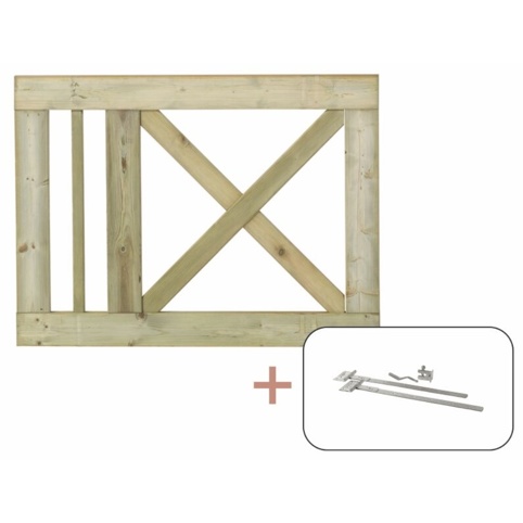 Denne FSC®-mærket ”Plus Slot”-enkeltlåge er fremstillet af trykimprægneret fyr/gran. Rammen måler 45x95 mm, og stavene måler 28x32 mm, mens krydsene måler 28x64 mm.