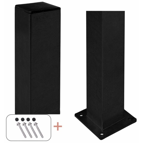 Denne stålstolpe har et moderne udtryk, som passer til tidens byggestil – den er fremstillet i varmgalvaniseret stål med pulverlakeret struktur i sort RAL 9005. Stolpen spiller flot sammen med træhegn og vil give din have, terrasse eller altan et elegant og eksklusivt look. Stolpen er beregnet til montering på fundament som f.eks. træterrasse eller betonfundament. Godstykkelsen er 5 mm. Der er 4 monteringshuller, som hver skal monteres med bolte (inkl.). Der medfølger plastprop til afslutning på toppen og møtrikhætter.