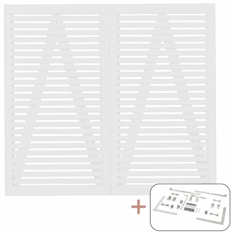 Denne FSC®-mærket "Plus Tokyo"-dobbeltlåge er fremstillet af fungicidbehandlet fyr/gran. FSC® arbejder for at udbrede ansvarligt skovbrug verden over. Desuden er lågen grundmalet hvid RAL 9010, og den er samlet med rustfrie slagskruer. Den omlimet lågeramme måler 42x90 mm, og skråstiverne måler 28x90 mm. Listerne måler 15x44 mm, og afstanden mellem listerne er 21 mm.