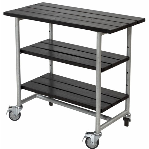 Flot og praktisk grillbord i sort på hjul – inkl. 1 hylde
