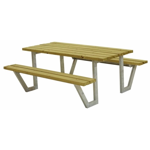 Dette Wega-bord-/bænkesæt er produceret af varmgalvaniseret stål og nåletræ, der er trykimprægneret. Træet er altså beskyttet mod råd, svampe- og insektangreb. Behandlingen af stålet gør det mere resistent overfor rust. Produktet er FSC®-mærket.