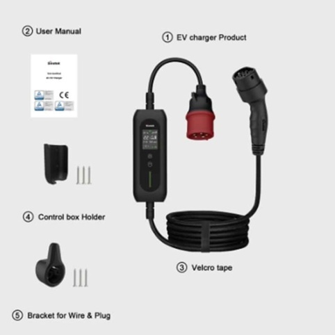 Laderen er udstyret med et CEE-stik i den ene ende og et 5 meter langt Type 2-kabel i den anden ende, som passer til langt de fleste elbiler og hybridbiler. På det smarte LED-display kan du nemt følge med i opladningen, hvor du kan se strømstyrke, spænding, opladningstid, temperatur og samlet forbrug. Du kan også planlægge opladningen via app, så den lader på et andet tidspunkt – for eksempel i de billige nattetimer. Laderen understøtter både 110V og 220V netspænding. Sikkerheden er i top med både over- og underspændingsbeskyttelse, lækstrømsbeskyttelse og temperaturovervågning, så du kan lade trygt og sikkert. Der medfølger en praktisk opbevaringstaske.