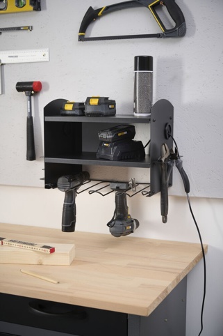 Opgradér værkstedet med denne hylde fra Probuilder, der er specialdesignet til opbevaring af elværktøj og tilbehør, så du kan holde det organiseret og lettilgængeligt. Modulet har 2 hylder samt en holder forneden til større maskiner. Siderne har kabelhuller og holdere til bor og værktøj. Hylden er fremstillet i metal med en dybde på 22,5 cm, en bredde på 42,5 cm og en højde på 30 cm.