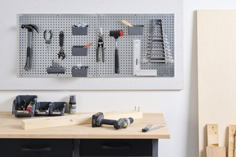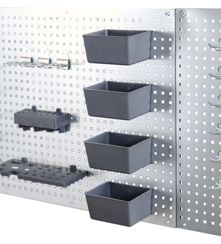 Værktøjspaneler med kroge, holdere, kasser og mere