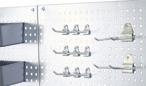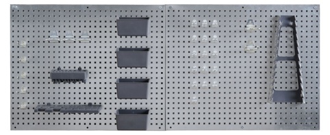 Med værktøjspaneler får du en praktisk opbevaringsløsning til dit værktøj. Dette sæt fra Probuilder indeholder både 2 stk. værktøjspaneler og et komplet tilbehørssæt med 33 dele. Tilbehøret består bl.a. af lange og korte kroge, dobbeltkroge, tangholdere, plastkasser og mere, så alt dit værktøj kan opbevares organiseret og nemt tages i brug. Værktøjspanelerne er fremstillet i stål.