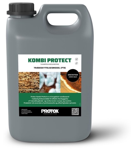 Protox KombiProtect er et effektivt alt-i-et træbeskyttelsesmiddel, der beskytter indendørs og udendørs træværk mod angreb fra skimmelsvamp, alle former for trænedbrydende svampe samt træødelæggende insekter som husbukke, borebiller, ægte hussvamp og tømmersvampe. Du kan anvende Protox KombiProtect både forebyggende og til at standse spredning af allerede igangværende angreb.