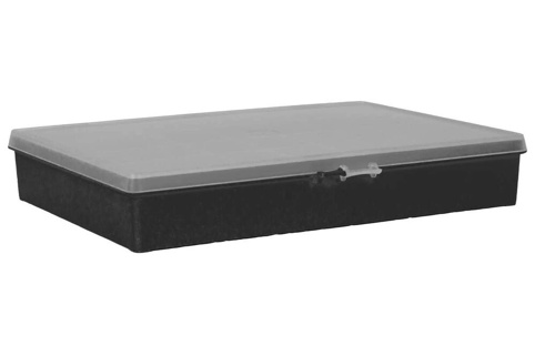 Boksen er lavet i stærk plast, så den tåler at blive taget med i værkstedet, garagen eller andre steder. Boksen måler T: 5,5 cm x B: 25,4 cm x L: 33,2 cm.