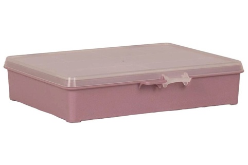 Boksen er lavet i stærk plast, så den tåler at blive taget med i værkstedet, garagen eller andre steder. Den har et gennemsigtigt låg, der giver dig et hurtigt overblik over det, som du har i boksen. Der er en sikker og enkel lukning, der holder alt på plads i boksen. Boksen måler T: 4 cm x B: 15,1 cm x L: 17,9 cm.