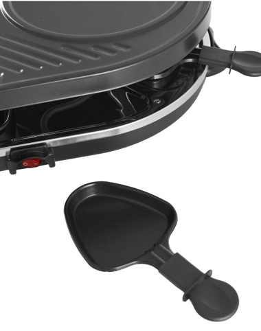 Her får du denne kompakte raclettegrill, der er ideel til brug af op til 8 personer, og den er perfekt til hyggelige måltider ved spisebordet. Med en effekt på 1.200W har den en jævn varmefordeling. Den aftagelige grillplade har et tilberedningsareal på 43x30, og gør det nemt at tilberede retter uden, at maden brænder fast. Grillen leveres med 8 stk. ovale, non-stick grillpander og 1 stk. spatel, så du kan tilberede og servere maden på en praktisk måde.