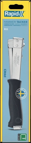 Denne hæftehammer er lavet til hæftning ved tagarbejde, isolering, plastfolie, fugtspærre mm. Det er en kraftfuld hammer, som er designet til krævende professionelle opgaver. Den har et ergonomisk og skridsikkert gummigreb, der gør den let at betjene. Hæftehammeren er lavet i stål og bruger type 140 hæfteklammer på 6-10 mm. Den måler 54 x 305 x 35 mm.