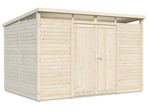 Med dette Palmako Elias m² store redskabsskur får du en praktisk opbevaringsløsning til haven. Heri kan du opbevare og organisere bl.a. haveredskaber, udendørs legetøj, grilltilbehør, værktøj og andre havartikler til havesæsonen. Langs toppen, hvor redskabsskuret er højst, er der placeret vinduer af ægte glas. Dobbeltdøren har en praktisk cylinderlås, så du nemt kan aflåse skuret ved behov. Skuret er fremstillet af nordisk gran, hvor væggene, gulvbrædderne og tagbrædderne er 16 mm tykke. Tag- og gulvbrædderne er med fer/not. OBS! Der medfølger ikke tagpap.