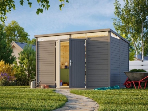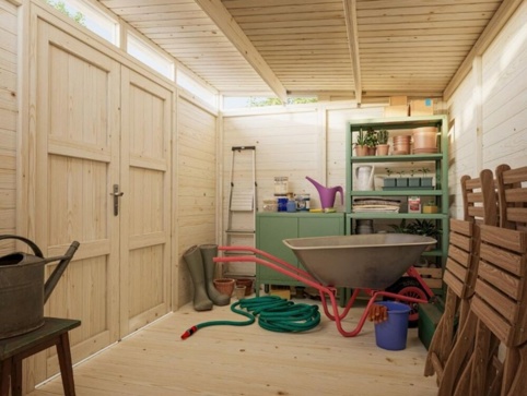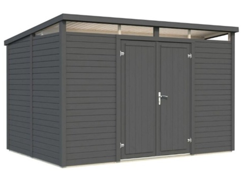 Med dette Palmako Elias m² store redskabsskur får du en praktisk opbevaringsløsning til haven. Heri kan du opbevare og organisere bl.a. haveredskaber, udendørs legetøj, grilltilbehør, værktøj og andre havartikler til havesæsonen. Langs toppen, hvor redskabsskuret er højst, er der placeret vinduer af ægte glas. Dobbeltdøren har en praktisk cylinderlås, så du nemt kan aflåse skuret ved behov. Skuret er fremstillet af nordisk gran, hvor væggene, gulvbrædderne og tagbrædderne er 16 mm tykke. Tag- og gulvbrædderne er med fer/not. OBS! Der medfølger ikke tagpap.