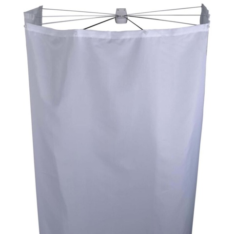 Mangler du en brusestang til et mindre badeværelse? Så finder du her denne paraplybrusestang med et hvidt badeforhæng, som kan lukkes i begge ender. Den er perfekt til små badeværelser med skråvægge, da den har en smart foldeteknik for at spare plads. Badeforhænget er af polyester og kan maskinvaskes op til 60 °C, men det må ikke afbleges eller renses kemisk. Paraplybrusestangen er af plastik og rustfrit stål. Brusekabinen kan nemt monteres på væggen, og monteringstilbehør som skruer og dyvler medfølger. Paraplystangen måler B: 100 cm x D: 70 cm x H: 180 cm (udslået mål), og selve badeforhænget måler B: 210 cm x H: 180 cm.