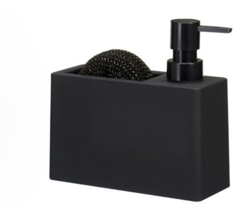 Denne sæbedispenser, i sort, har et stilrent og moderne udtryk, der passer ind i de fleste badeværelser. Den kan rumme 310 ml sæbe og er fremstillet af dolomit. Sæbedispenseren leveres med en matchende svamp, som gør den både praktisk og dekorativ.