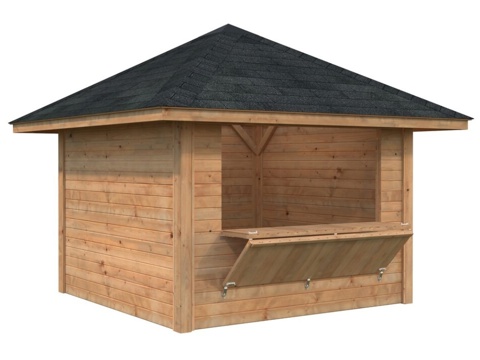 Her kan du finde denne Bianca 104 kiosk fra Palmako. Den har 1 stor luge, som du kan lukke og låse. Derfor er den super-velegnet til forskellige formål, idet du bl.a. kan bruge den til julemarkeder, fodboldstadioner o.l. Den har masser af plads, da den har et indendørs areal på 8,3 m². Produktet er FSC®-mærket.