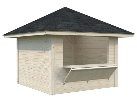 Her kan du finde denne Bianca 104 kiosk fra Palmako. Den har 1 stor luge, som du kan lukke og låse. Derfor er den super-velegnet til forskellige formål, idet du bl.a. kan bruge den til julemarkeder, fodboldstadioner o.l. Den har masser af plads, da den har et indendørs areal på 8,3 m². Produktet er FSC®-mærket.