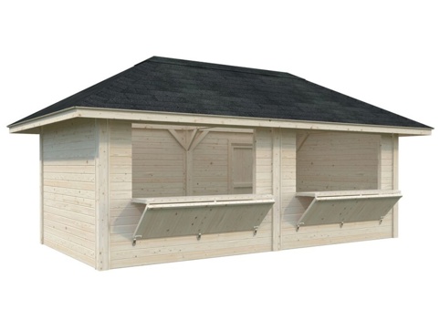 Her kan du finde denne Bianca 111 kiosk fra Palmako. Den har 2 store luger, som du kan lukke og låse. Derfor er den super-velegnet til forskellige formål, idet du bl.a. kan bruge den til julemarkeder, fodboldstadioner o.l. Den har masser af plads, da den har et indendørs areal på 16,6 m². Produktet er FSC®-mærket.