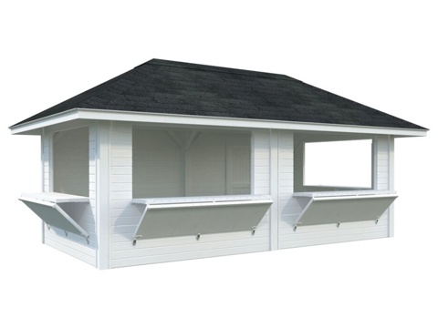 Her kan du finde denne Bianca 112 kiosk fra Palmako. Den har 4 store luger, som du kan lukke og låse. Derfor er den super-velegnet til forskellige formål, idet du bl.a. kan bruge den til julemarkeder, fodboldstadioner o.l. Den har masser af plads, da den har et indendørs areal på 16,6 m². Produktet er FSC®-mærket.