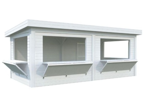 Her finder du denne Lenna kiosk der har 4 store luger, som du kan lukke og låse. Derfor er den super-velegnet til forskellige formål, idet du bl.a. kan bruge den til julemarkeder, streetfood, fodboldstadioner o.l. Den har masser af plads, da den har et indendørs areal på 16,6 m². Produktet er FSC®-mærket.