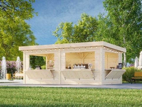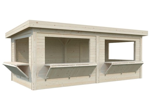 Her finder du denne Lenna kiosk der har 4 store luger, som du kan lukke og låse. Derfor er den super-velegnet til forskellige formål, idet du bl.a. kan bruge den til julemarkeder, streetfood, fodboldstadioner o.l. Den har masser af plads, da den har et indendørs areal på 16,6 m². Produktet er FSC®-mærket.