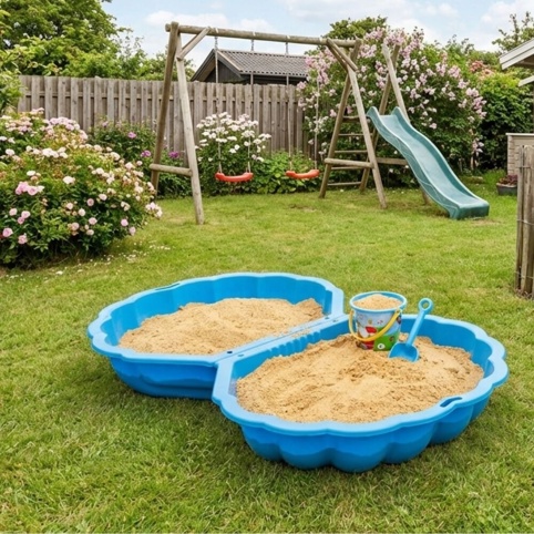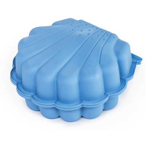 Vil dit barn lege i sandkasse, soppebassin eller boldbassin? Med denne flotte og sjove sandkasse, giver du dit barn de ideelle betingelser for at lege med sand, vand eller bolde i haven, på terrassen eller altanen. Sandkassen er udformet som 2 flotte muslingeskaller, og den er fremstillet i blå plast. Plasten er fremstillet uden farvestoffer, ftalater, benzen, cadmium, bly og andre miljø- eller sundhedsskadelige stoffer, og du kan derfor trygt lade barnet udfolde sin kreativitet og fantasi. Plasten er 100% genanvendelig. Sandkassen kan indeholde ca. 110 L.