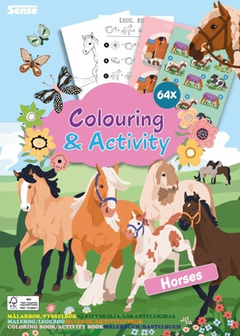Med en god aktivitetsbog kan kreativiteten slippes løs i alle aldre og timerne hurtigt gå. Det er en 64 siders bog fyldt med sjove, kreative opgaver, farverige billeder og motiver til farvelægning. Det gennemgående tema er heste, der inviterer til alt fra sjov og leg til fordybelse og læring. Bogen er FSC® MIX-certificeret, da træet kommer fra ansvarligt drevne FSC-certificerede skove.