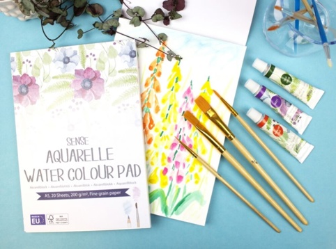Du finder her en blok fra Sense med 20 ark udviklet til akvarelmaling. Du kan både bruge flydende og faste vandfarver. Blokken består af 20 ark, der er firkornede. Den vejer 200 g/m2 og er fra FSC®-certificeret træ, der kommer fra ansvarligt drevne skove.