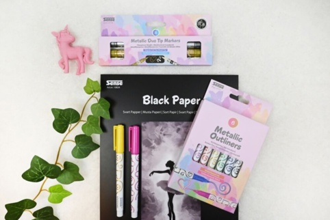 Skab anderledes værker med en blok med sortfarvet papir. Med en sort baggrund er diverse penne i forskellige farver velegnede at bruge. Du kan bl.a. bruge metal-, glitter- og akrylpenne. Blokken består af 30 ark med midnatssort papir i A4-størrelse. Den vejer 160 g/m2 og er fra FSC®-certificeret træ, der kommer fra ansvarligt drevne skove.
