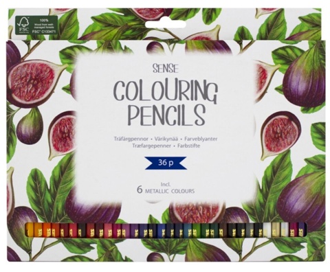 Lav flotte, farverige tegninger med træfarveblyanter fra Sense. Farveblyanterne har en 3 mm spids, så du kan lave detaljerige tegninger. Sættet indeholder 36 forskellige nuancer i regnbuens farver, mens 6 af farverne er metalliske. Blyanterne er lavet af FSC®-certificeret træ, der kommer fra ansvarligt drevne skove.