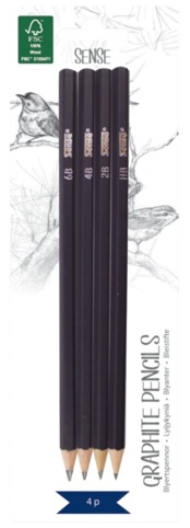 Med dette sæt fra Sense kan du skabe flotte skitsetegninger. Sættet består af 4 skitseblyanter i hårdheder på hhv. 6B, 4B, 2B og HB. De forskellige hårdheder gør dem ideelle til hver deres opgave. H-blyanter er perfekte til detaljerige tegninger, mens B-blyanter er blødere, som gør dem velegnede til skygger og blød dækning af større områder.