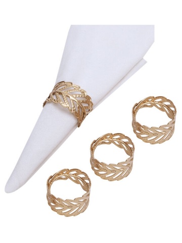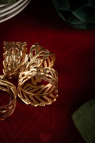 Her kan du finde disse fine servietringe i guld, som egner sig perfekt sammen med f.eks. en bomuldsservietter – og du kan med fordel tilføje et stykke gran for at fuldende udtrykket og sprede julestemning. Brug servietringene til at skabe en flot pyntning af tallerkener og servietter. Du får her en pakke med 4 stk. servietringe.