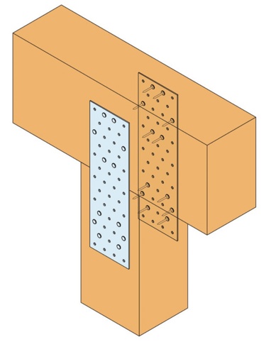 Når du f.eks. skal samle top stolper, skal du bruge 2 hulplader. Hvis du kun bruger 1, får du ikke et stabilt resultat. Du får det bedste resultat, hvis du bruger beslagskruer til at fastgøre beslaget – og gerne med en skruemaskine, så du er sikker på, de sidder godt fast.Hullerne på pladen har en diameter på 5 mm.
