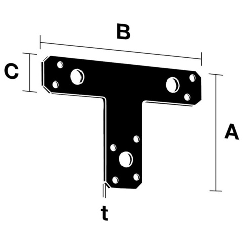 T-jern bruges typisk til konstruktioner af træ, hvor der er en t-formet samling. Derfor kan du med dette T-beslag øge styrken af bjælke/søjle forbindelser, og det er perfekt til pergolaer, markiser o.l. projekter, hvor enden af bjælken skal understøttes af en stolpe, herunder passer den til stolper fra 90x90 til 200x200 mm.