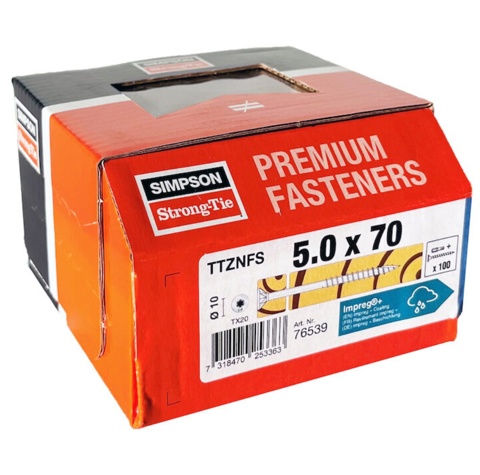 Simpson Strong-Tie, Træskruer inkl. bit, Impreg®+, 5,0x70 mm, 100 stk.