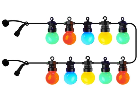 Vil du forlænge din Lucas-lyskæde fra Sirius? Her får du en suppleringskæde med 10 kulørte LED-pærer. Lyskæden har en længde på 3 m og leveres uden transformer. Selve pærerne måler 4 cm i diameter og har en højde på ca. 7 cm. De er desuden fremstillet af hårdt plast som er utroligt holdbart. Denne suppleringskæde kan kun kobles sammen med Lucas-lyskæden. Du kan tilslutte op til 9 af disse suppleringskæder til din Lucas-lyskæde. Dvs. du kan lave en lyskæde, der måler op til 30 m i længden og har op til 100 LED-pærer.