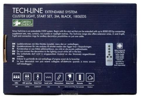 Med Sirius Tech-Line kan du skabe en lyskæde, der kan nå rundt i hele haven. Du kan nemlig forlænge startsættet med intet mindre end 8.000 lys. Der er altså mange muligheder for at forlænge kæden, så den kan nå om carporten, buskene, udhænget o.l. Du skal dog være opmærksom på, at startsættet kun kan bruges sammen med et suppleringssæt fra Tech-Line serien.