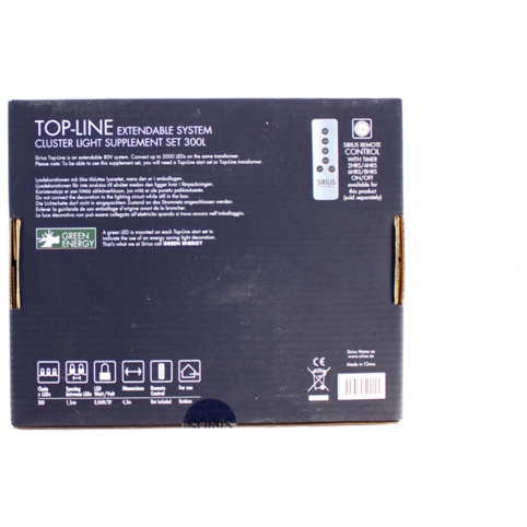 Har du pyntet haven med de fine Cluster Lights fra Sirius’ Top-Line-serie? Og kunne du godt lige bruge lidt ekstra ledningslængde for at fuldende udtrykket? Så kan du her få et supplementsæt, der passer til alle Top-Line Cluster Lights fra Sirius. Sættet måler 4,5 m, så du kan få ekstra rækkevidde på lyskæderne. Lyskæden har en indbygget timerfunktion, som kan betjenes via Sirius Fjernbetjeningen (ekskl.). Det betyder, at du kan tænde din lyskæde, så den vil være tændt i 4, 6 eller 8 timer, hvorefter den automatisk slukker og starter igen, når der i alt er gået 24 timer.