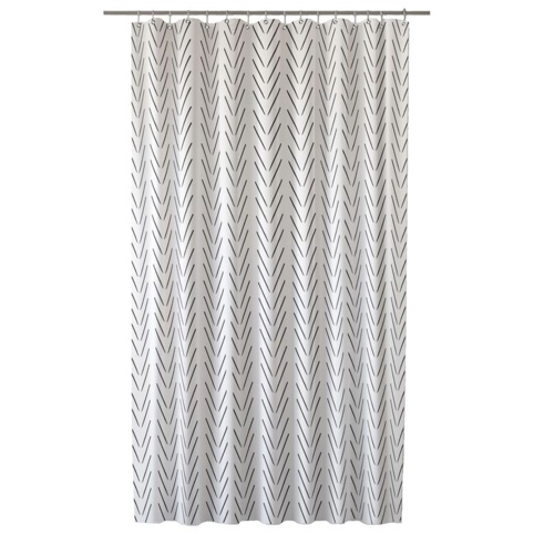 Skab en afslappende atmosfære på badeværelset med tekstiler i dæmpede farver. Dette fine badeforhæng er hvid med nedadrettede pile af sorte streger, som gør, at det passer ind i enhver moderne og minimalistisk indretning. Forhænget er vandafvisende, så det klæber sig derfor ikke til kroppen, og der er 12 øskner i klar plast i toppen til ophæng, men der medfølger ikke badeforhængsringe. Med Skabt med omtanke-mærket gør vi det nemmere for dig at vælge de mest miljøvenlige produkter i vores sortiment. Badeforhænget er fra Silvans eget mærke, Skabt med omtanke.