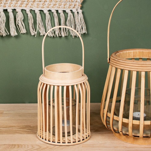 Lanternen er fremstillet af bambus og har en flot naturfarve, som giver den et eksotisk look – perfekt til sommeraftener på terrassen eller altanen.