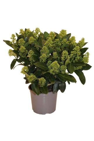 Med denne dekorative Skimma White får du en kompakt, stedsegrøn busk, der er flot hele året. Haveplanten får ovale, blanke, mørkegrønne og læderagtige blade, som den beholder hele året. Derudover danner den tætte blomsterknopper om efteråret, der ofte er lysegrønne eller cremefarvede. Planten blomstrer i foråret, typisk i april og maj med snehvide, duftende blomster i små toppe.