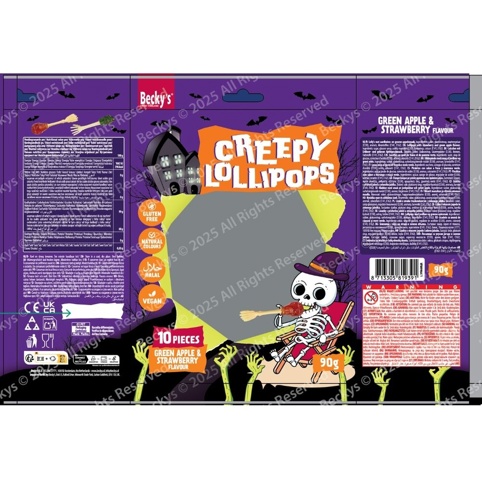 Hvis du mangler festlige slikkepinde, der vil være et sjovt valg til børn, så kan du købe denne Creepy Tasty Bones pose med farverige slikkepinde, der smager af grønne æbler og jordbær. De er perfekte til Halloween, festlige lejligheder og fredagshygge. I posen får du 90 g og indeholder 8 velsmagende slikkepinde.