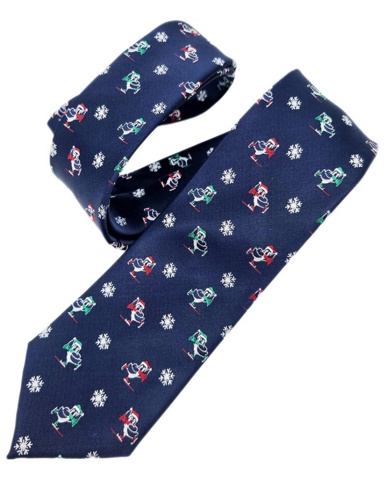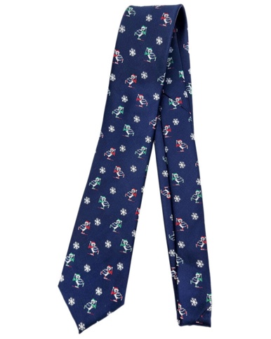 Gør dig klar til årets hyggeligste måned med slips, der emmer af jul og glæde. Dette slips er pyntet med skøjtende pingviner, og er derfor en lille julefest i sig selv. Det er perfekt til julefrokoster, nissedage på arbejdet, familiefester eller bare når du vil sprede lidt ekstra julestemning omkring dig.