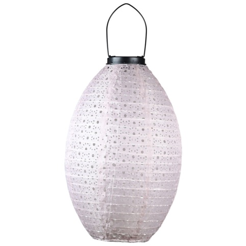 Hvis du gerne vil skabe en hyggelig rolig belysning i haven eller på terrassen, så kan du her finde en super-fin solar lanterne, som automatisk bliver ladet op af solens stråler og herefter vil lyse i de sene timer. Lanternen har en hank, som gør du nemt kan hænge den op, enten som pynt eller belysning – og den er perfekt at hænge på grene, i snore o.l. Vær dog opmærksom på, at produktet er fremstillet af papir.